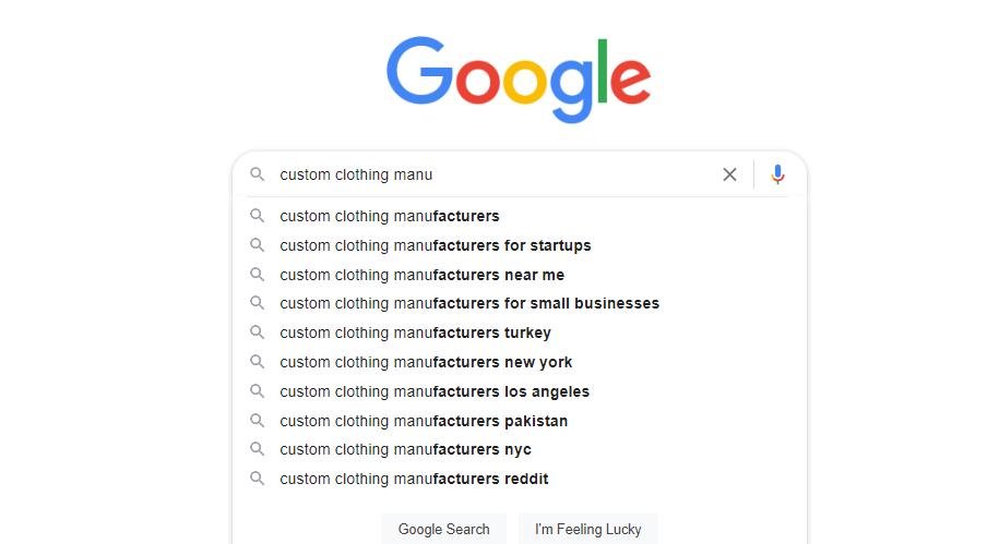 - Google Keywords like “custom clothing manufacturers”.